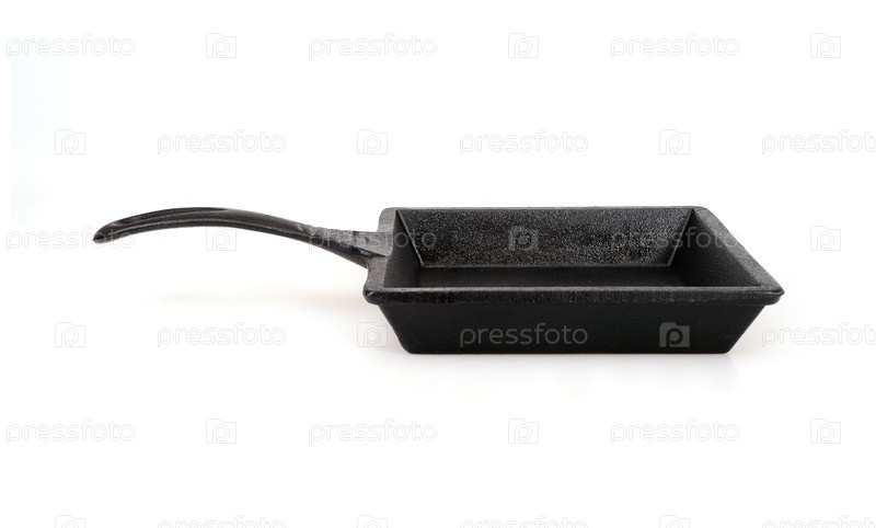 Черная квадратная чугунная сковородка изолирована на белом фоне