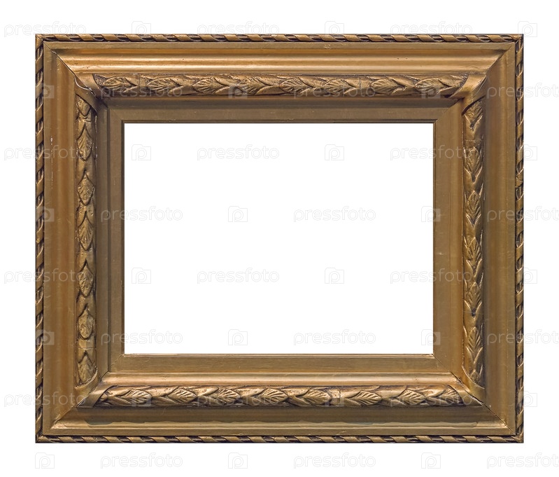 Золотая рама для картин, зеркал или фотографии изолированной на белом фоне