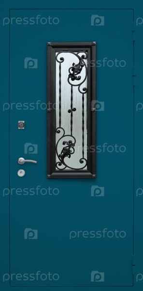 Модель входной металлической двери, изолированной на белом фоне