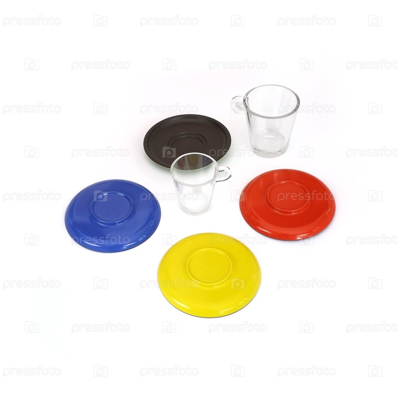 Чашки и тарелки для кофе или чая (набор), изолированные на белом фоне