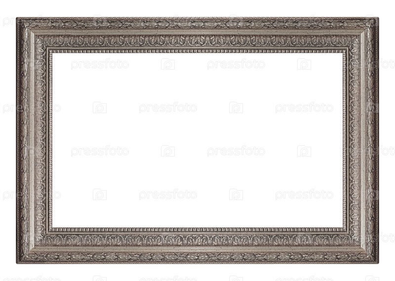 Серебряная рама для картин, зеркал или изолированной фотографии на белом фоне