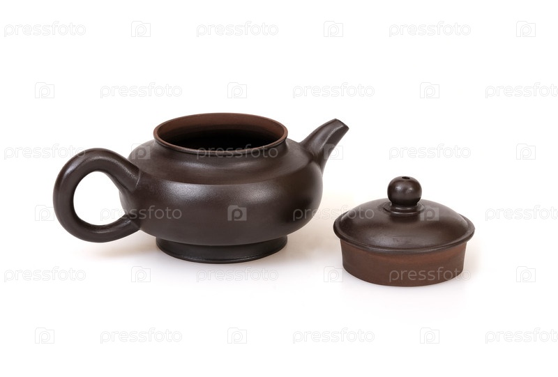 Порцелановый коричневый чайник в китайском стиле изолирован на белом фоне