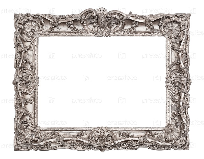 Серебряная рама для картин, зеркал или изолированной фотографии на белом фоне