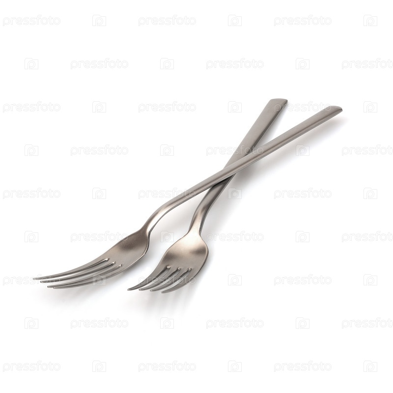 Две металлические вилки изолированы на белом фоне