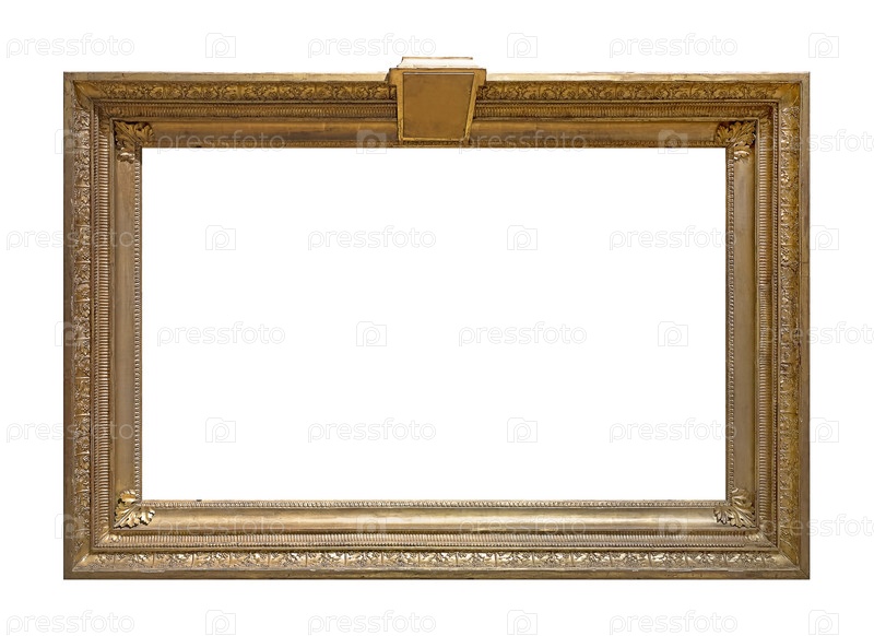 Золотая рама для картин, зеркал или фотографии изолированной на белом фоне