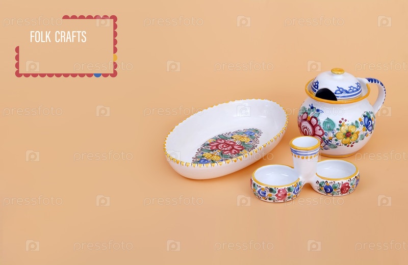 Традиционная словацкая посуда изолирована на простом фоне