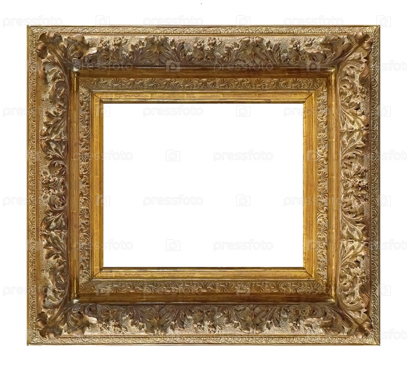 Золотая рама для картин, зеркал или фотографии изолированной на белом фоне