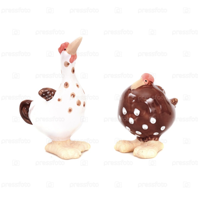 Две забавные фигуры курицы изолированы на белом фоне
