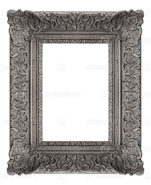 Серебряная рама для картин, зеркал или изолированной фотографии на белом фоне