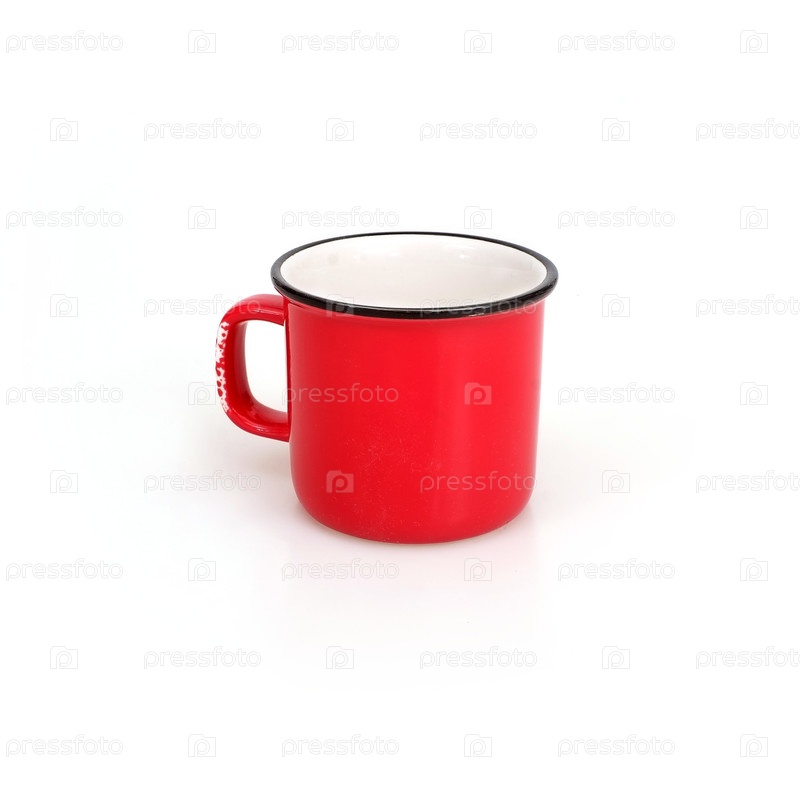 Красная глиняная кружка имитирует эмаль, изолированную на белом фоне