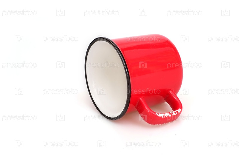 Красная глиняная кружка имитирует эмаль, изолированную на белом фоне