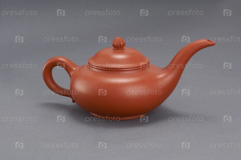 Керамический чайник ручной работы изолирован на сером фоне