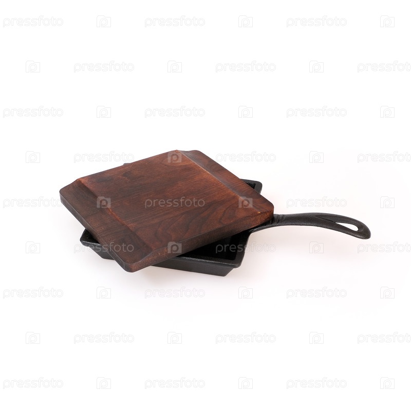 Черная квадратная чугунная сковородка изолирована на белом фоне