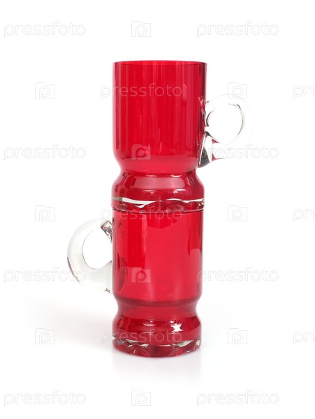 Рубиновые стеклянные кружки изолированы на белом фоне