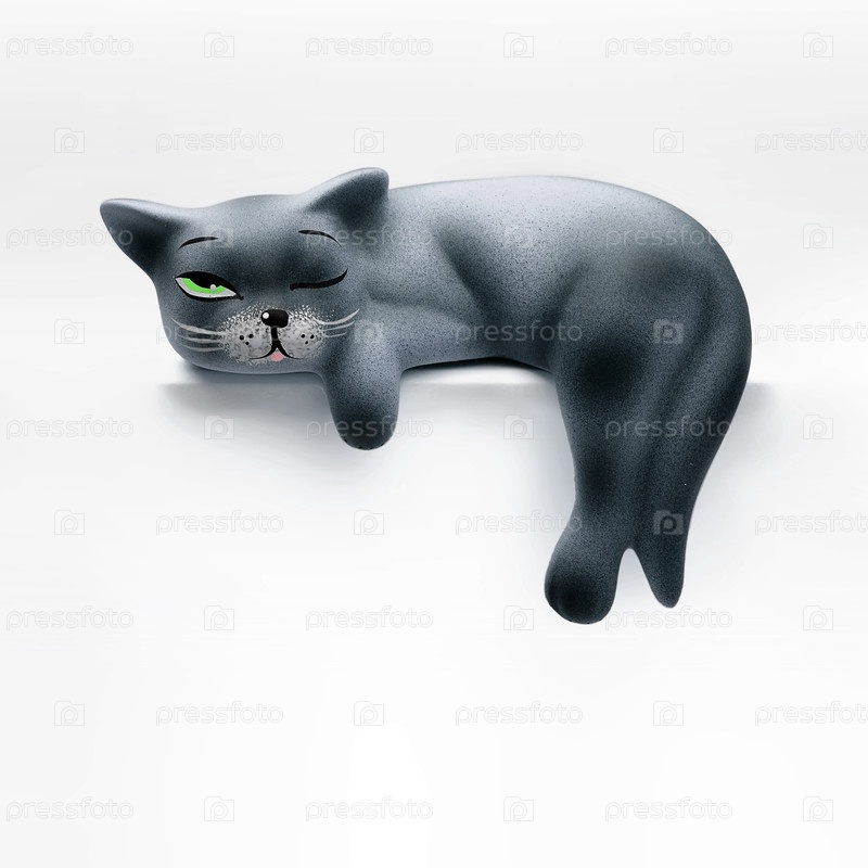 Керамическая статуэтка "Забавный котенок лежит на краю крыши" изолирована на белом фоне