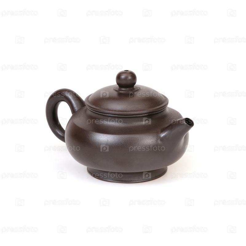 Порцелановый коричневый чайник в китайском стиле изолирован на белом фоне