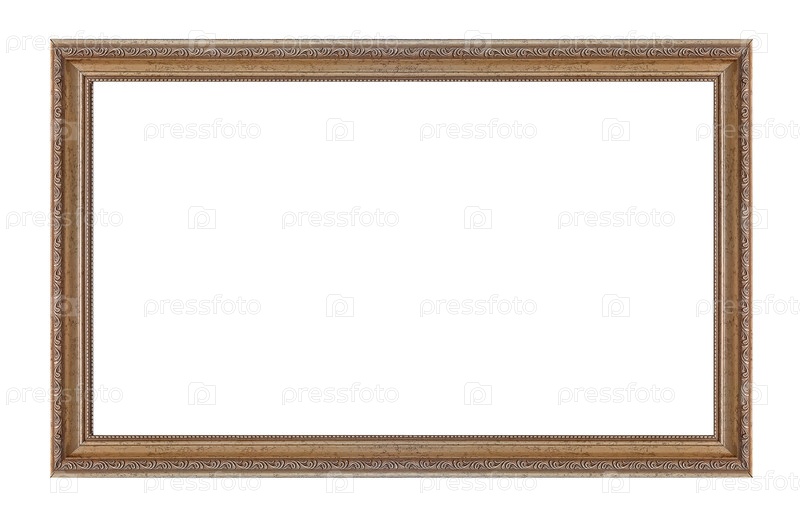 Панорамная золотая рама для картин, зеркал или изолированной фотографии на белом фоне с готовым вырезом
