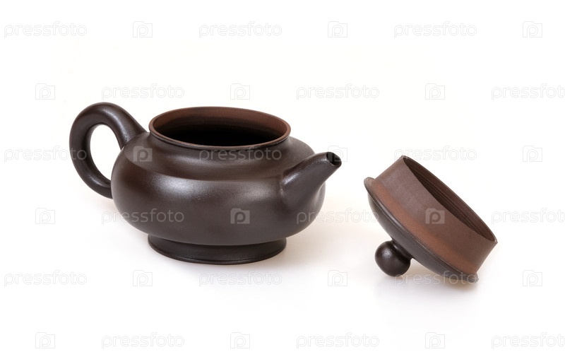 Порцелановый коричневый чайник в китайском стиле изолирован на белом фоне