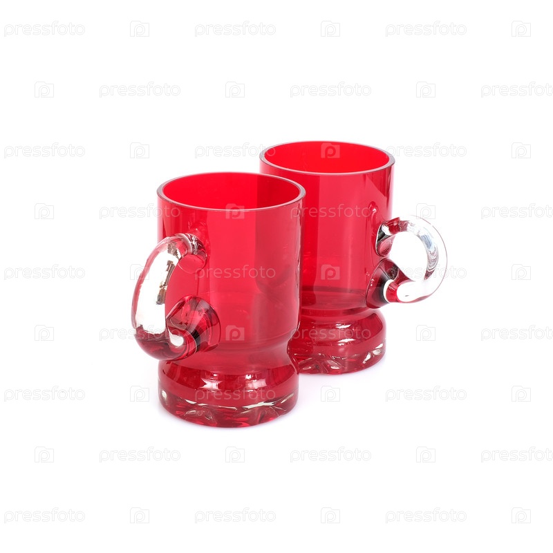 Рубиновые стеклянные кружки изолированы на белом фоне