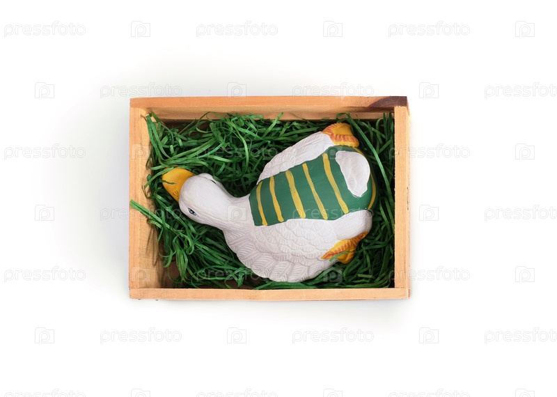 Керамическое игрушечное утенок изолировано на белом фоне