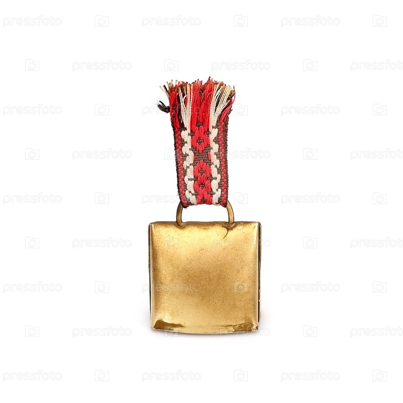 Сувенирный золотой колокол из Швеции, выделенный на белом фоне