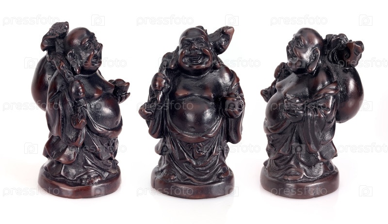 Фигура японского божества богатства, веселья и счастья изолирована на белом фоне
