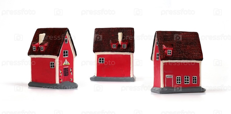 Керамический сувенир из стран Балтии с изображением знаменитых старых домов, изолированных на белом фоне