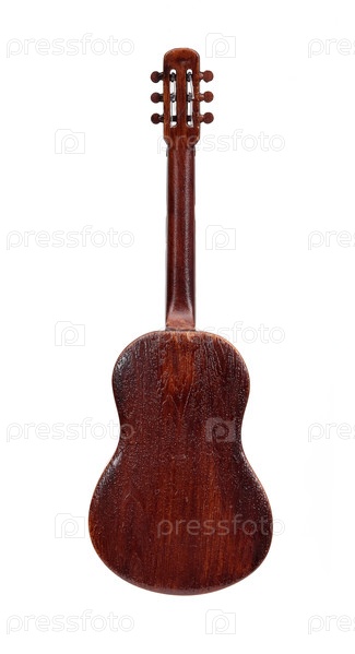 Сувенирная гитара с золотыми орнаментами изолирована на белом фоне