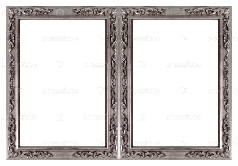 Двойная серебряная рама (диптих) для картин, зеркал или фотографий, изолированных на белом фоне