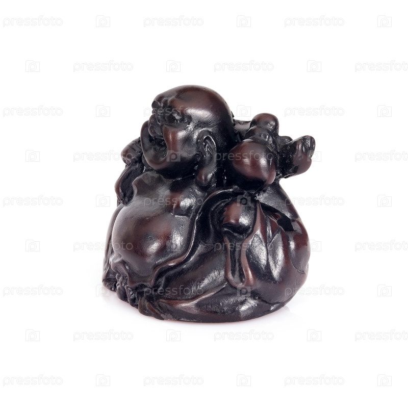 Фигурка японского божества богатства Хотэй, веселья и счастья, изолированная на белом фоне