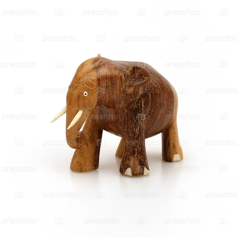 Деревянный сувенир слона из дерева и слоновой кости, выделенный на белом фоне