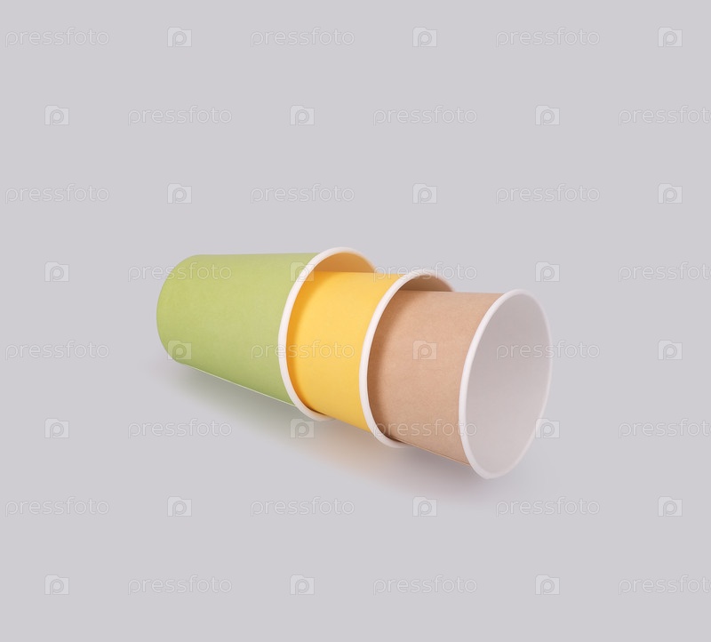 Крафт-бумажная чашка изолирована на сером фоне. дизайнерский элемент с дорожкой обрезки