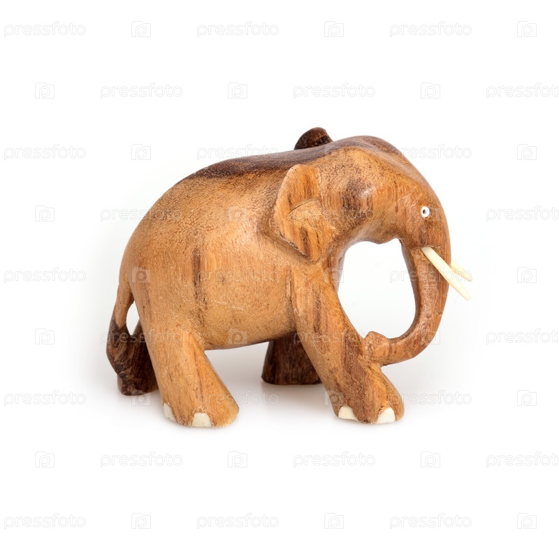 Деревянный сувенир слона из дерева и слоновой кости, выделенный на белом фоне