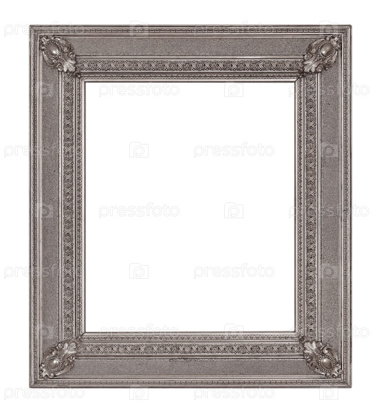 Серебряная рама для картин, зеркал или изолированной фотографии на белом фоне