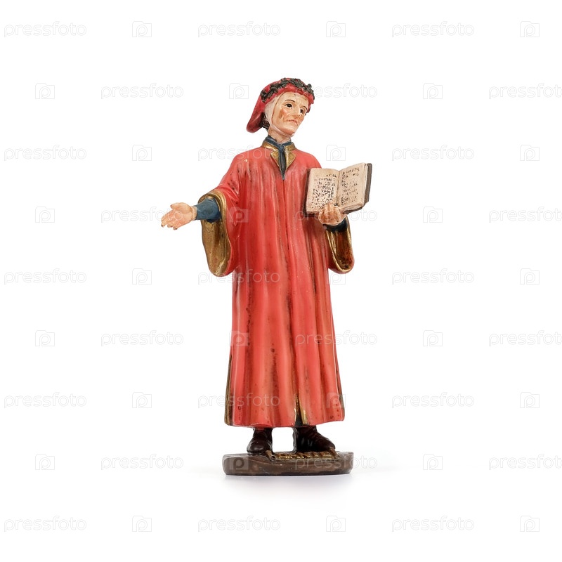 Керамическая сувенирная фигура известного итальянского поэта в красном платье. Надпись на английском языке означает имя поэта "Данте"