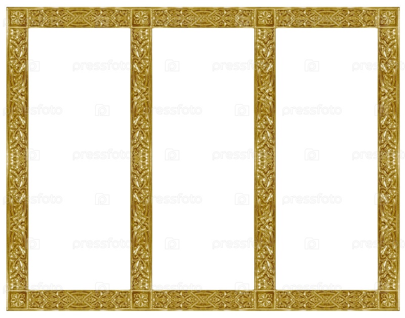 Панорамная золотая рама для картин, зеркал или изолированной фотографии на белом фоне