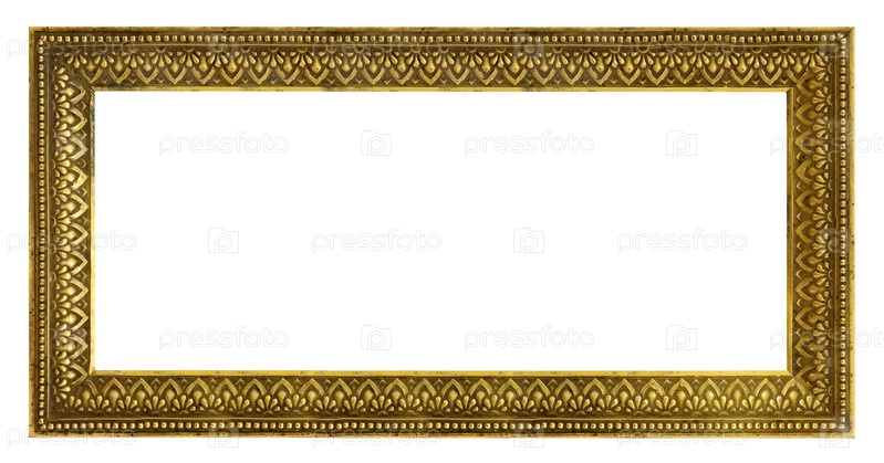Панорамная золотая рама для картин, зеркал или изолированной фотографии на белом фоне