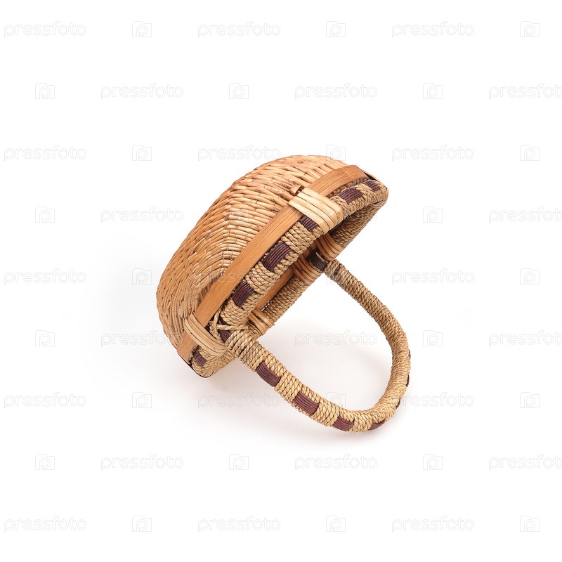 Ручно изготовленная плетеновая корзина, изолированная на белом фоне