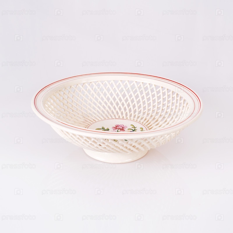 Порцелановая чаша с цветочным орнаментом, изолированная на белом фоне
