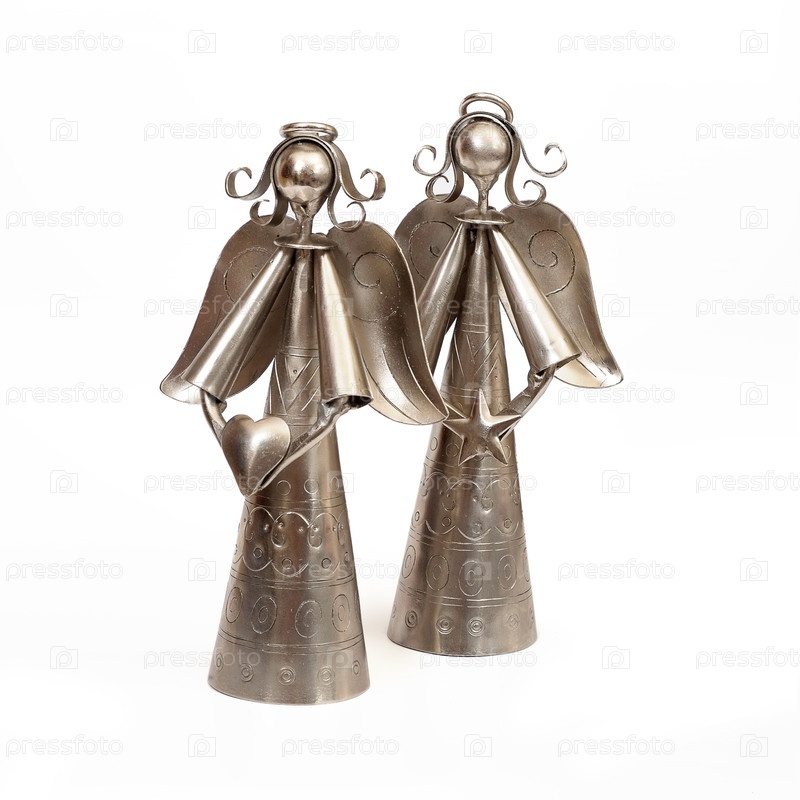 Металлические ангелы с сердцами и звездами изолированы на белом фоне