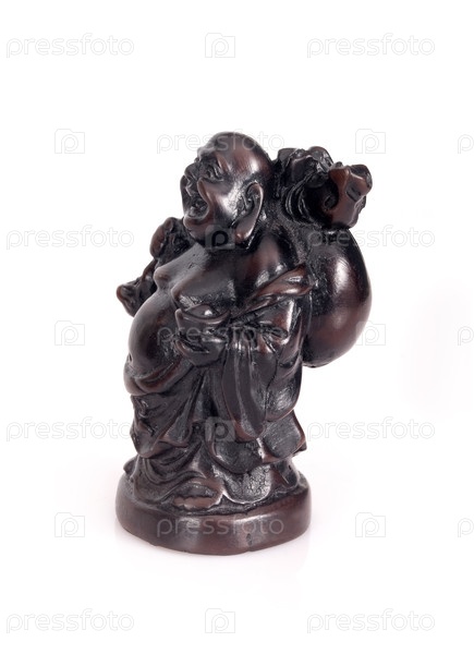 Фигурка японского божества богатства Хотэй, веселья и счастья, изолированная на белом фоне