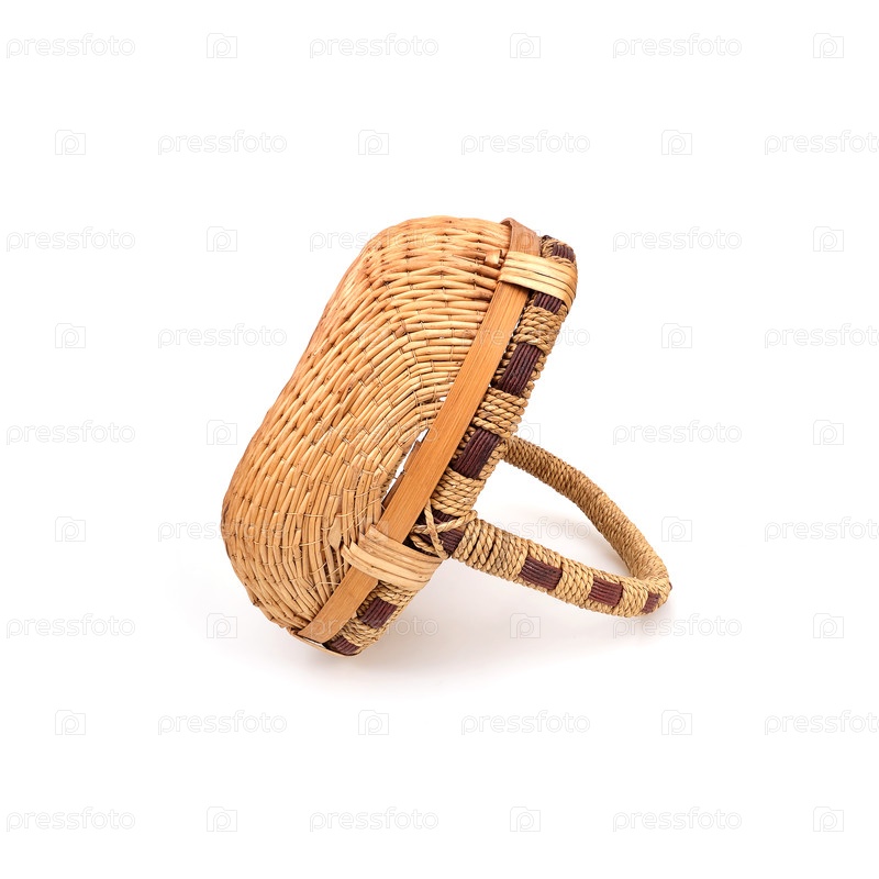 Ручно изготовленная плетеновая корзина, изолированная на белом фоне