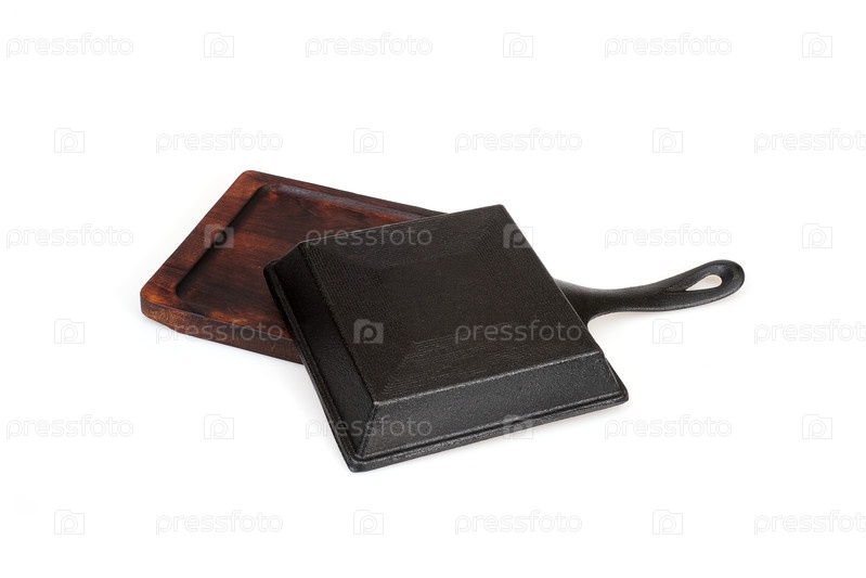 Черная квадратная чугунная сковородка изолирована на белом фоне