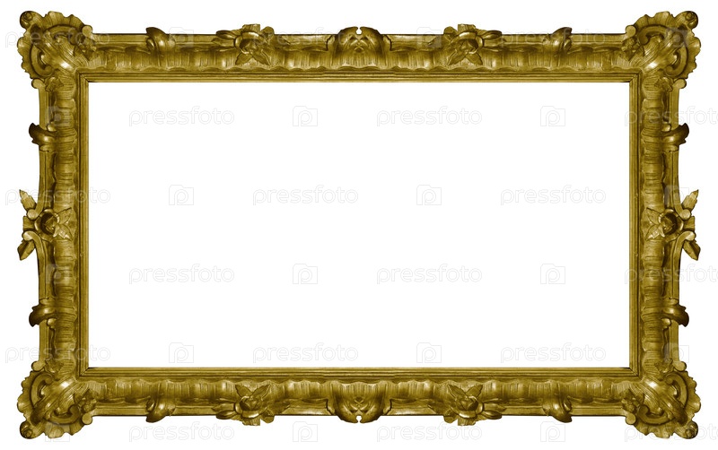 Панорамная золотая рама для картин, зеркал или изолированной фотографии на белом фоне