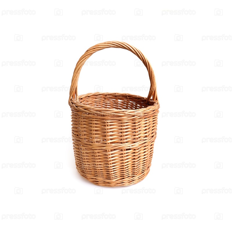 Ручно изготовленная плетеновая корзина, изолированная на белом фоне