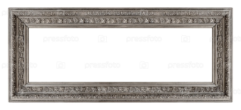 Панорамная серебряная рама для картин, зеркал или изолированной фотографии на белом фоне