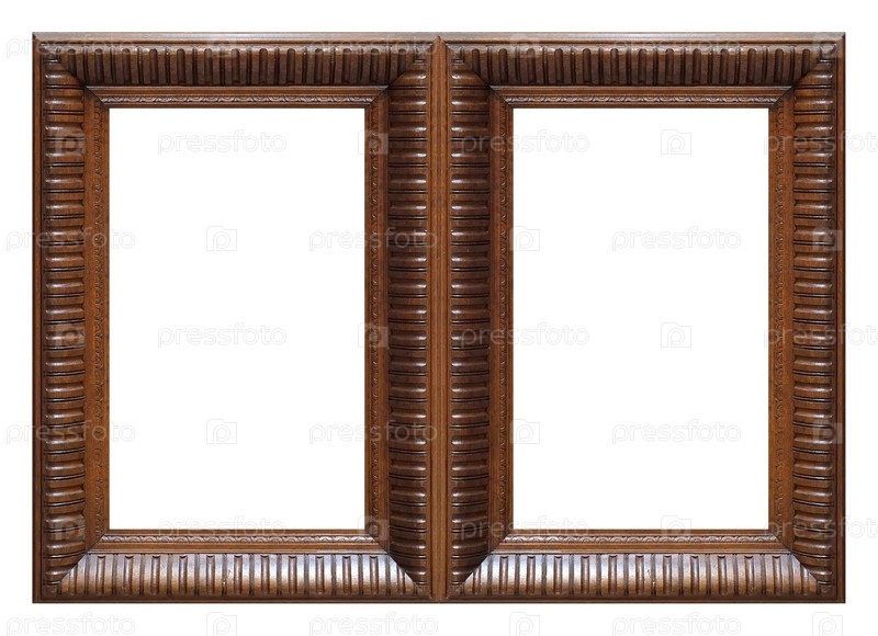 Двойная деревянная рама (диптих) для картин, зеркал или фотографий, изолированных на белом фоне