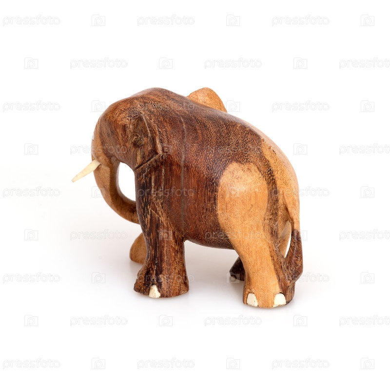 Деревянный сувенир слона из дерева и слоновой кости, выделенный на белом фоне