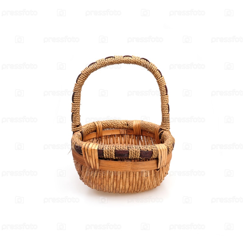 Ручно изготовленная плетеновая корзина, изолированная на белом фоне