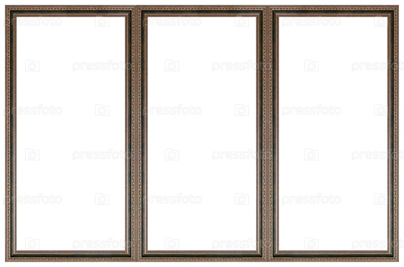 Тройная золотая рама (триптих) для картин, зеркал или фотографий, изолированных на белом фоне